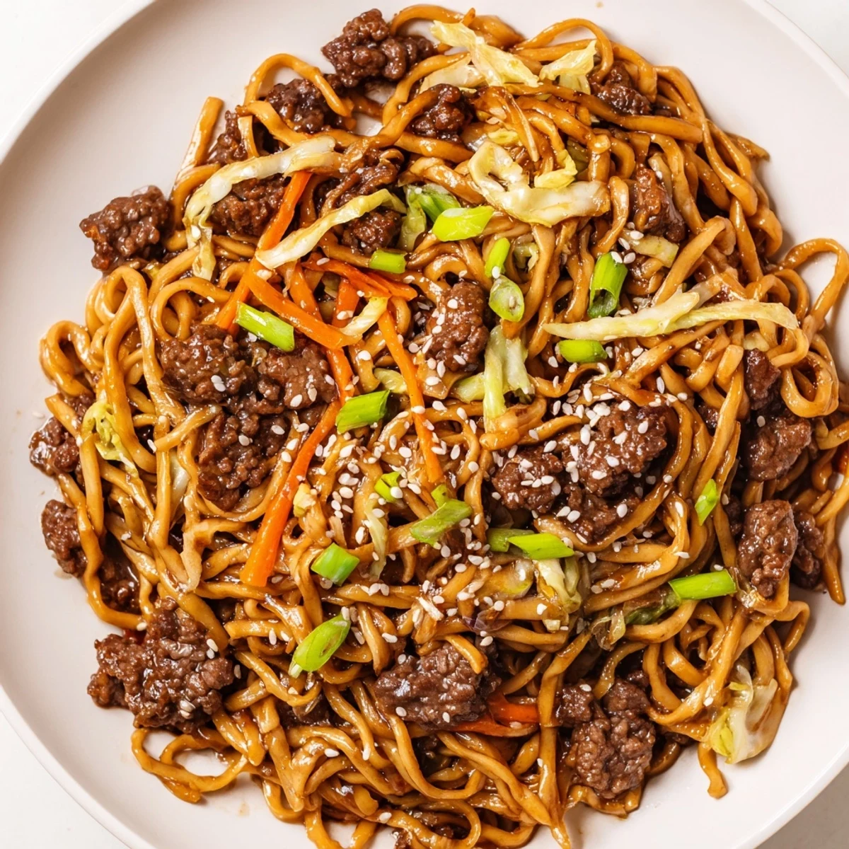 This savory noodle dish combines seasoned ground beef with colorful vegetables and a umami-rich sauce featuring soy, oyster, and hoisin flavors. Ready in just 35 minutes, it's perfect for busy weeknights when you want something satisfying but don't have hours to spend cooking.