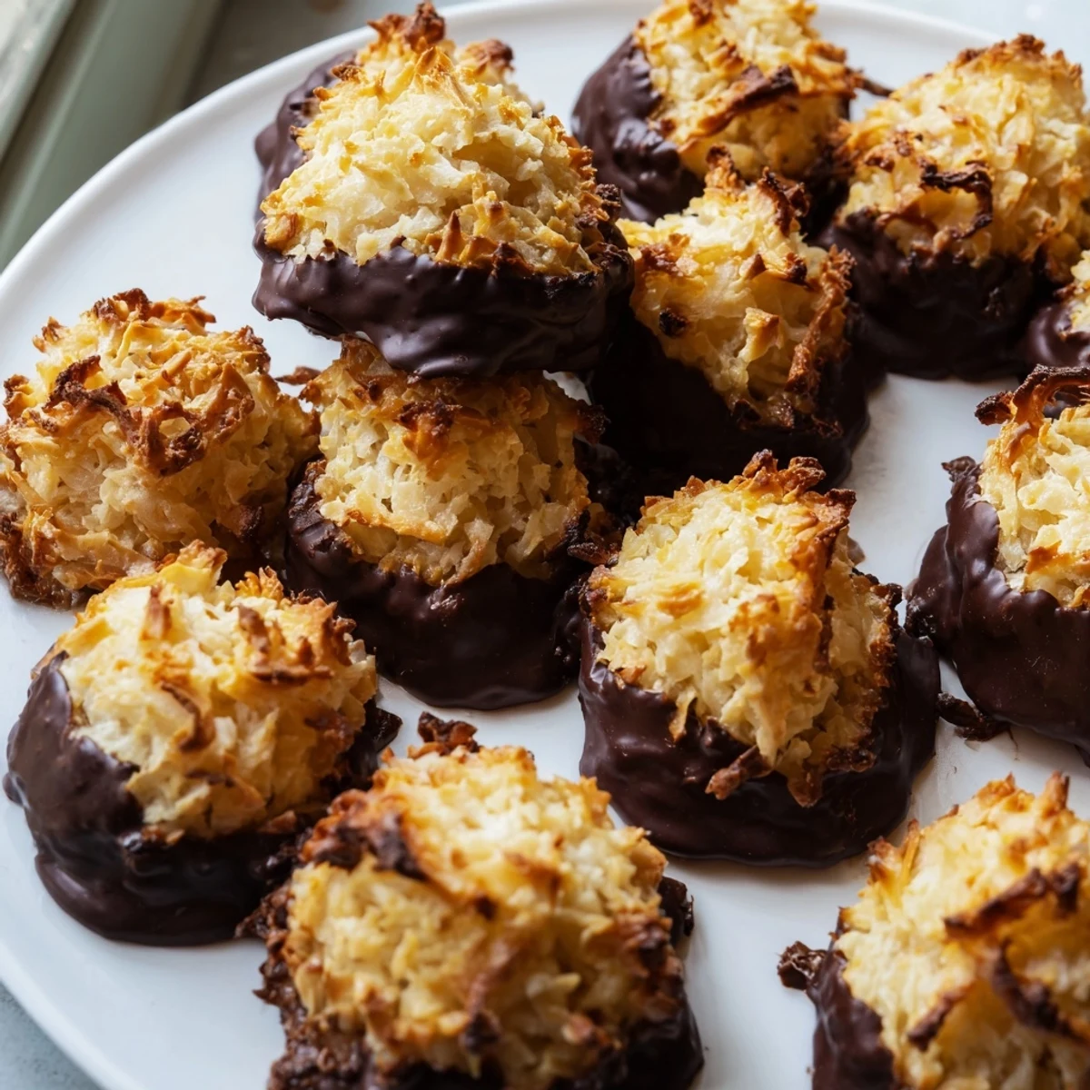 These delightful coconut macaroons feature a perfectly balanced texture—crispy and golden on the outside with a soft, chewy center. Made with simple ingredients including shredded coconut, egg whites, and vanilla, they come together in just 35 minutes. The naturally gluten-free treats are ideal for coconut enthusiasts and can be elevated with a chocolate-dipped bottom for extra richness.