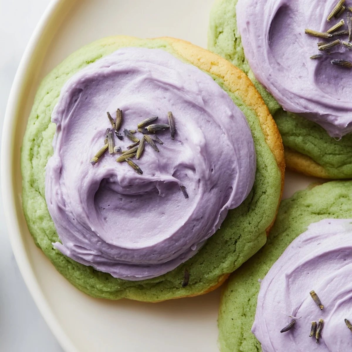 The cookie base features culinary-grade matcha whisked into classic sugar cookie dough, creating a beautiful pale green crumb with subtle caffeine and antioxidants. The frosting incorporates finely ground culinary lavender buds for natural floral flavor and optional purple hue.