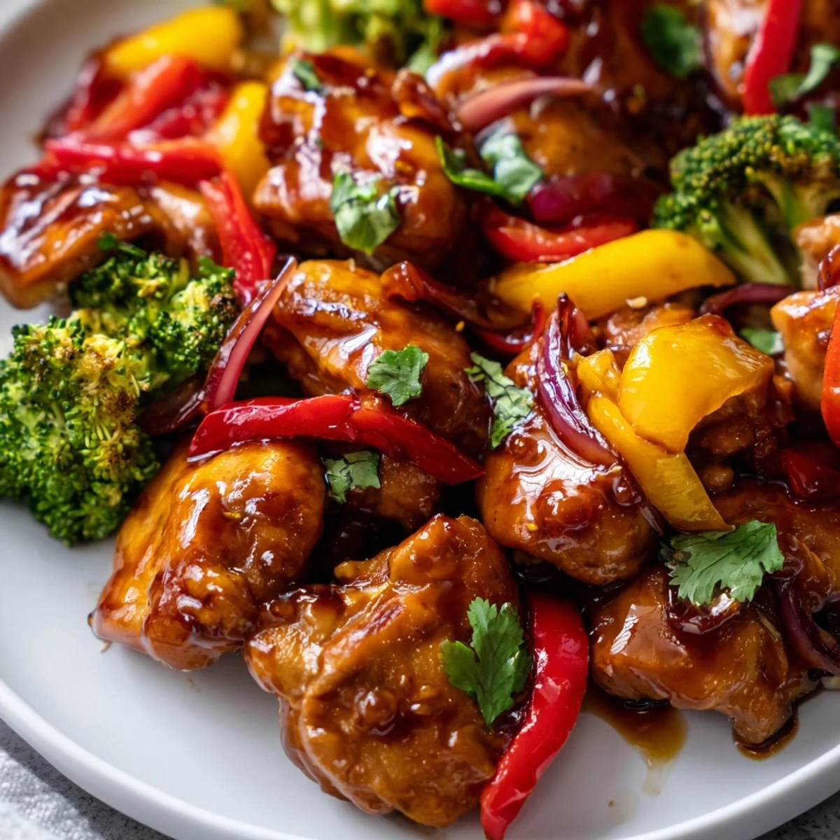 This vibrant weeknight dinner comes together in just 30 minutes, featuring tender chicken thighs and colorful vegetables stir-fried to perfection. The sweet-savory sauce combines soy sauce, honey, and rice vinegar for a balanced glaze that coats every bite. Serve over steamed rice for a complete meal that's both satisfying and nutritious. With 31g protein per serving and dairy-free friendly, it's an ideal choice for health-conscious home cooks looking for restaurant-quality results without the fuss.