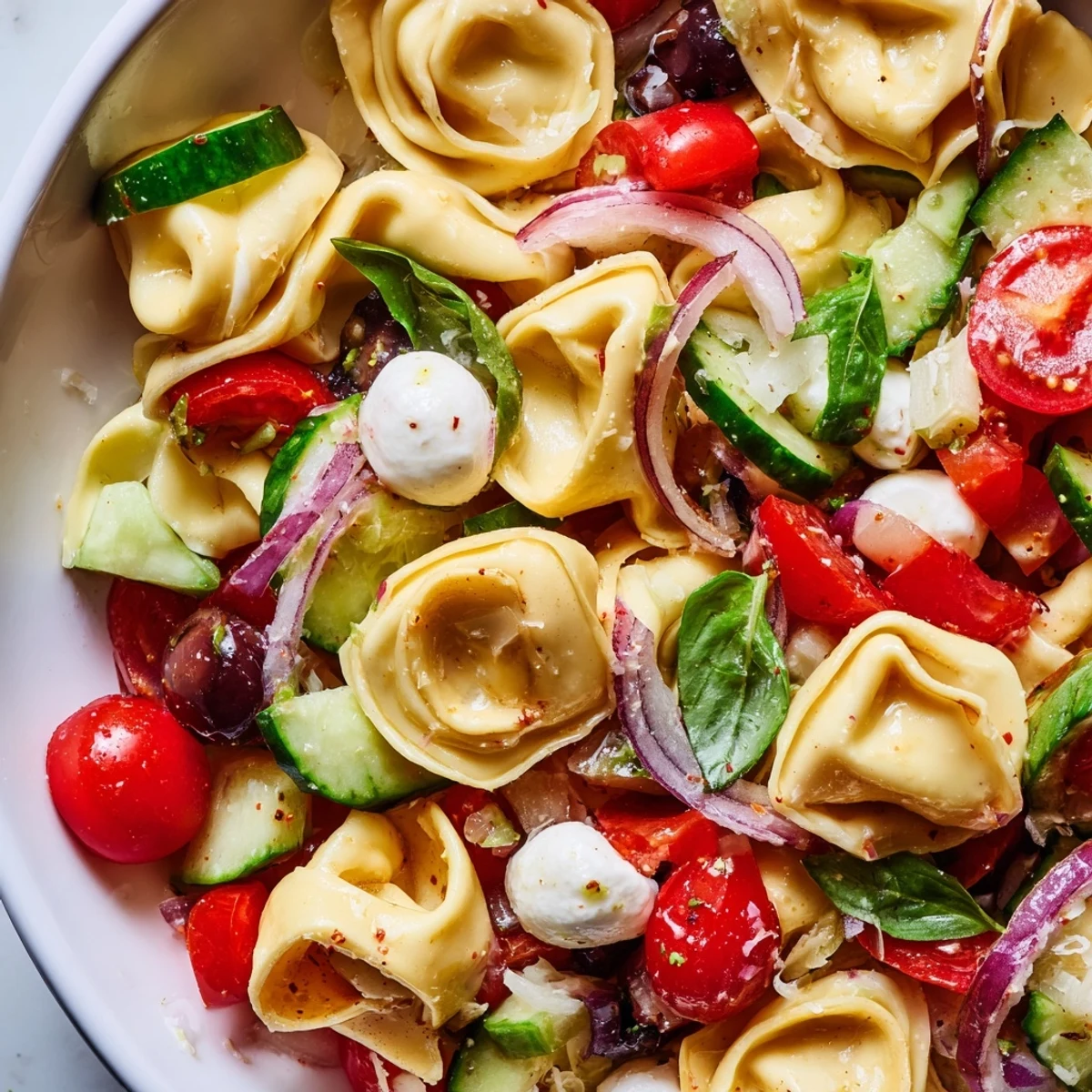 This vibrant salad brings together tender cheese-filled tortellini with crisp cherry tomatoes, cucumber, bell pepper, red onion, and black olives. Fresh mozzarella and basil add brightness while a zesty Italian dressing ties everything together. Ready in just 22 minutes, this dish travels beautifully to picnics and potlucks.